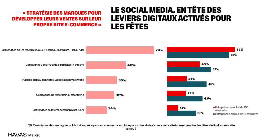 - 79 % des marques activent des campagnes sur les réseaux sociaux (vs 75 % en 2024).
