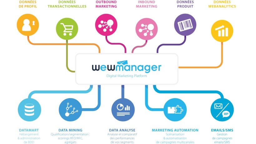 Totalement intégrés à wewmanager, les nouveaux outils orientés Digital Data Intelligence sont disponibles en mode SaaS, webservice ou API. Avec l’application Datamart/BDD, véritable coeur de ce système de données où les Smart Data sont rassemblées et segmentées, les applications Datamining, Marketing Automation et Data Analyse vont permettre aux entreprises de gérer simplement et efficacement leur relation client grâce à la Smart Data, et ce sans aucune compétence « métier » ou technique.