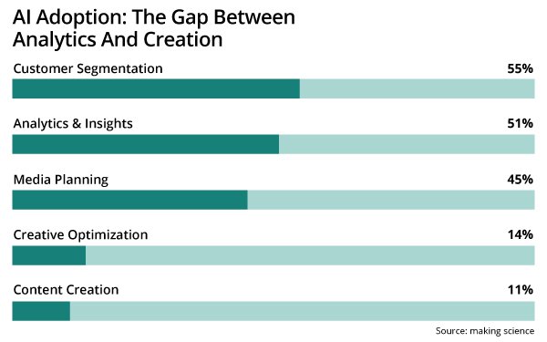 Elle met en lumière un paradoxe frappant dans l’adoption de l’IA par les décideurs marketing B2C américains : si 95 % des CMO déclarent un retour positif de l’IA dans leurs campagnes média, seuls 17 % l’ont intégrée comme une capacité centrale, véritablement inscrite dans l’ensemble de leurs opérations marketing.