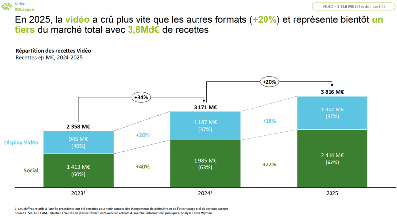 La transformation la plus structurante reste l’essor de la vidéo, qui représente désormais près d’un tiers des recettes digitales (3,8 milliards d’euros).