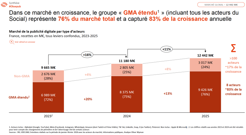 Dans un contexte macroéconomique modéré, avec une croissance du PIB attendue autour de 1 %, le marché digital français pourrait encore progresser d’environ 11 % en 2026, frôlant les 13,8 milliards d’euros.